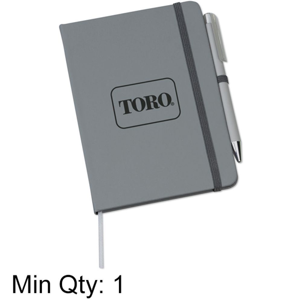 Include a medium point pen with black ink, elastic closure and ribbon page marker