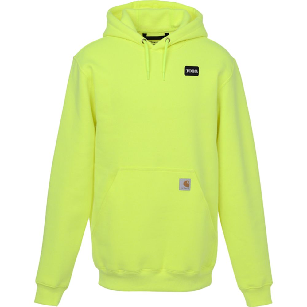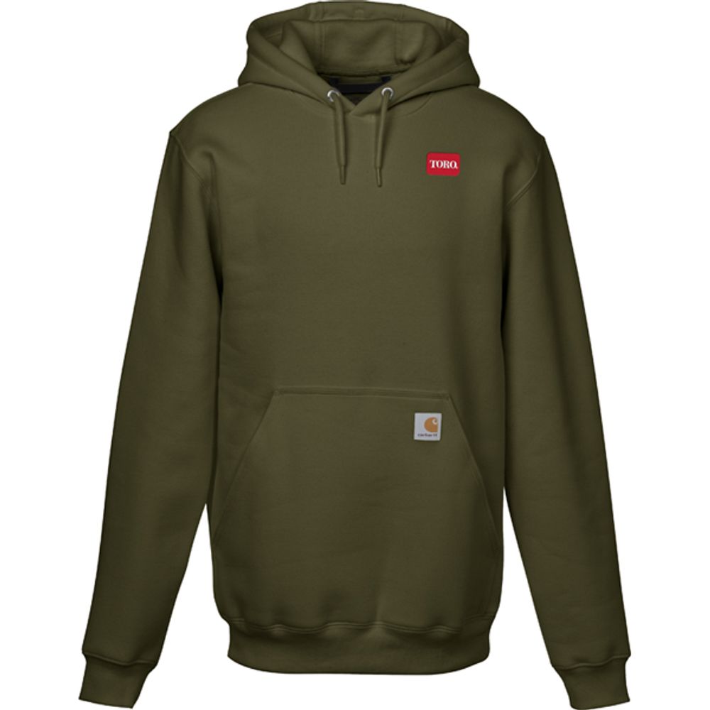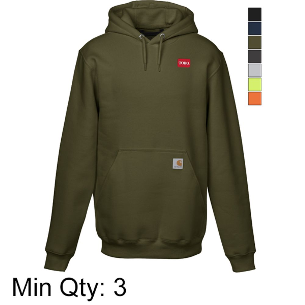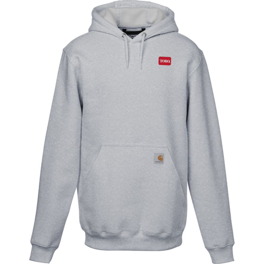 This Carhartt hooded sweatshirt is made with a 10.5 ounce 50/50 cotton/polyester blend of material with a soft fleece lining (Heather Gray is made with 70/30 cotton/polyester blend)